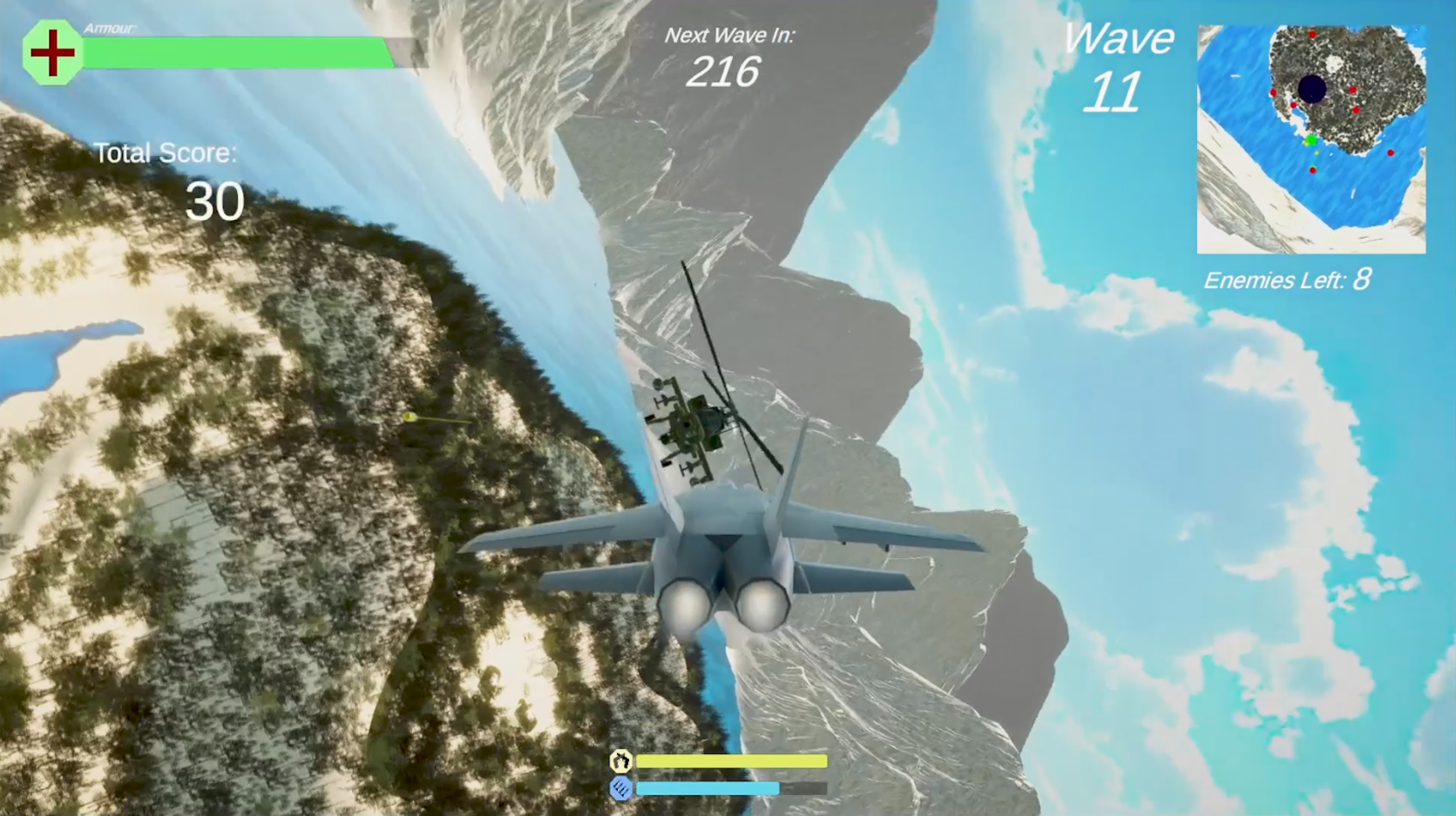 Endless Dogfight is a wave-based arena Plane shooter with simplified aerial Rigidbody physics, various types of BOIDS enemies and 8 Powerups.